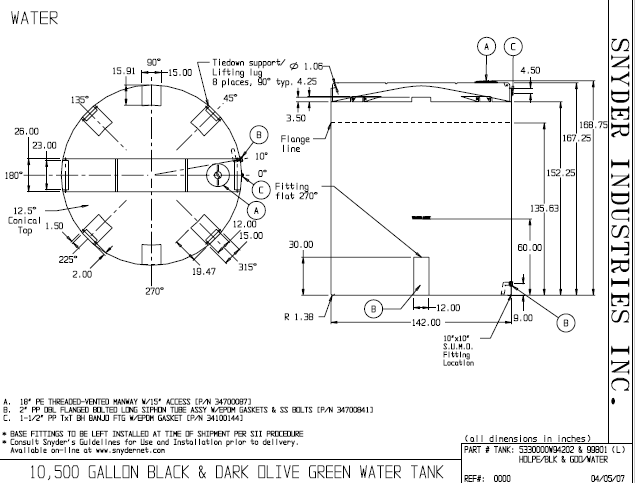 10500gal 142"D x 169"H Poly Water Tank. Utilizes State of the art One-piece Seamless Construction For High quality storage capabilities.