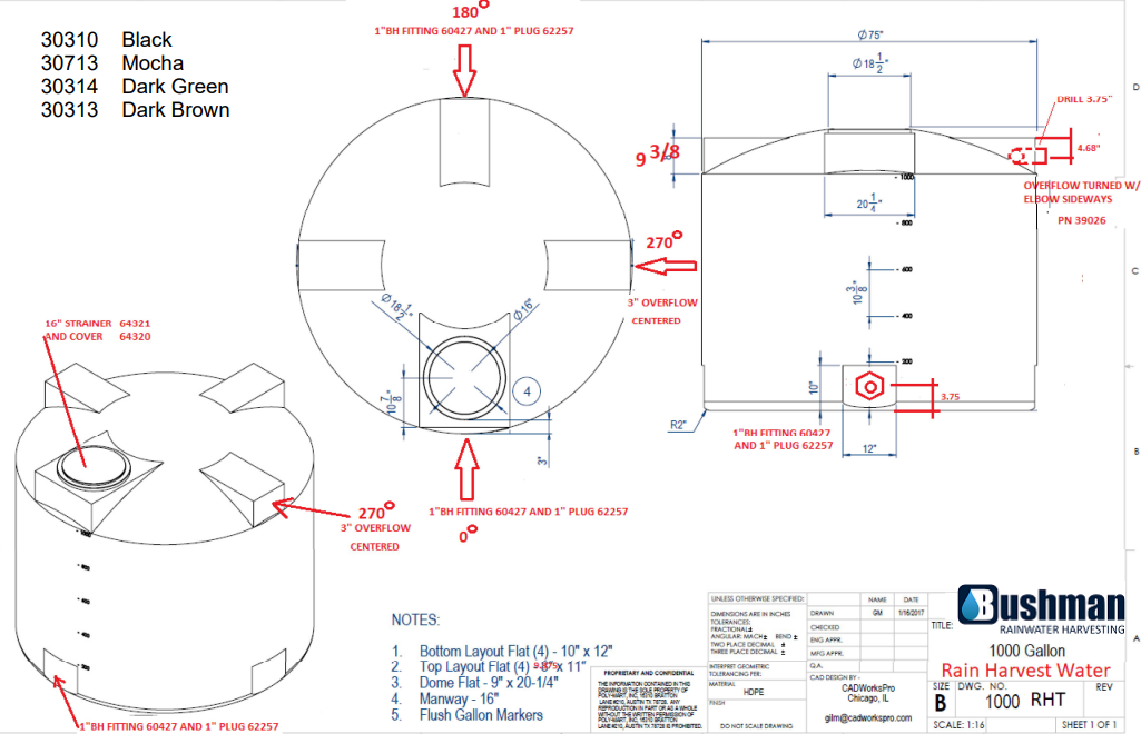 30314- 1,000 gal 75"D x 65"H Rain Harvesting Forest Green Poly Water Tank