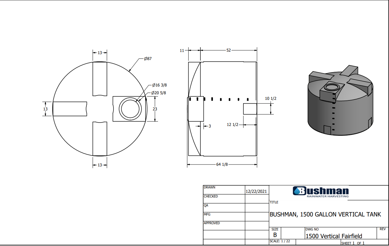 30343- 1,500 gal 90"D x 64"H Rain Harvesting Forest Green Poly Water Tank