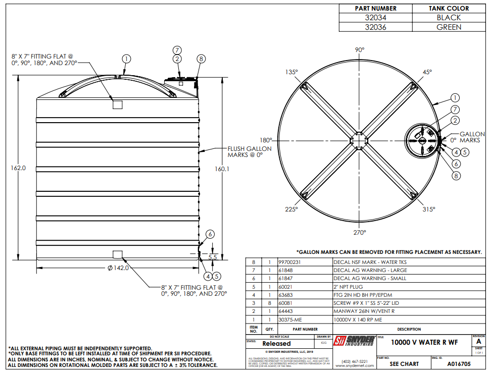 32036 10000gal 142"D x 167"H Green Poly Water Tank FOB Merced, Ca