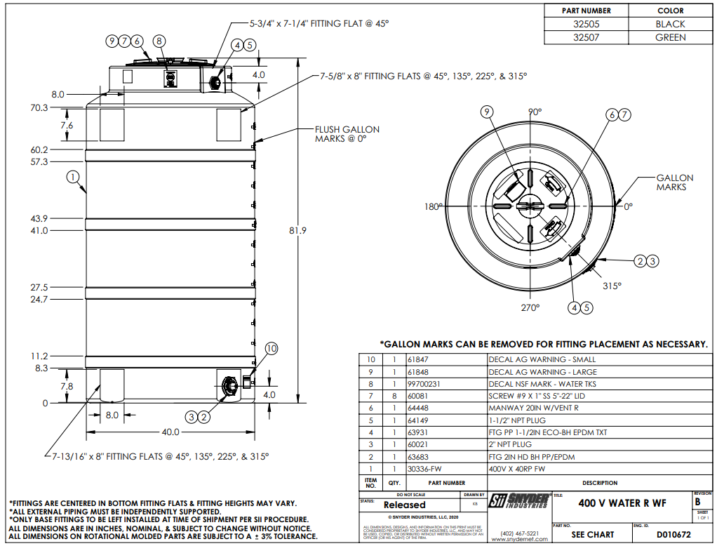 400-gallon vertical Water storage tank. Utilizes State of the art One-piece Seamless Construction for High quality storage capabilities. Tanks are available in Black, Dark Green and Sand.