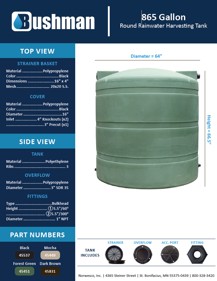 45537 865gal 64"D x 67"H Rain Harvesting Black Poly Water Tank FOB Merced, CA