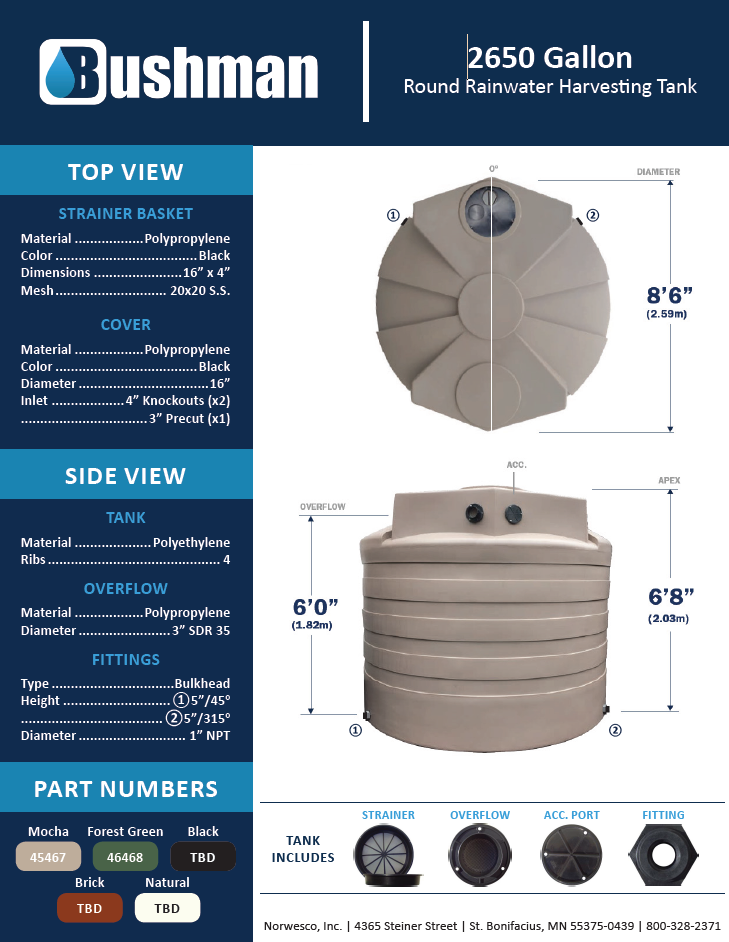 45759 2650gal 102"D x 80"H Rain Harvesting Black Poly Water Tank FOB Merced, CA