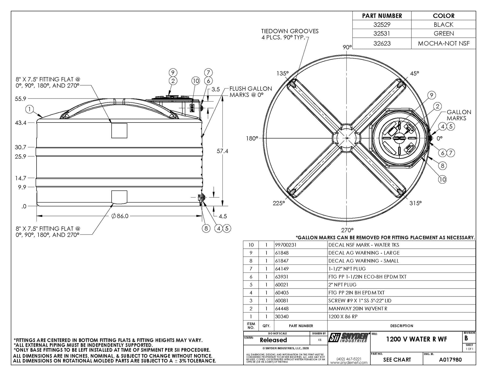 1,200-gallon Green Poly Water Tank 86" Diameter