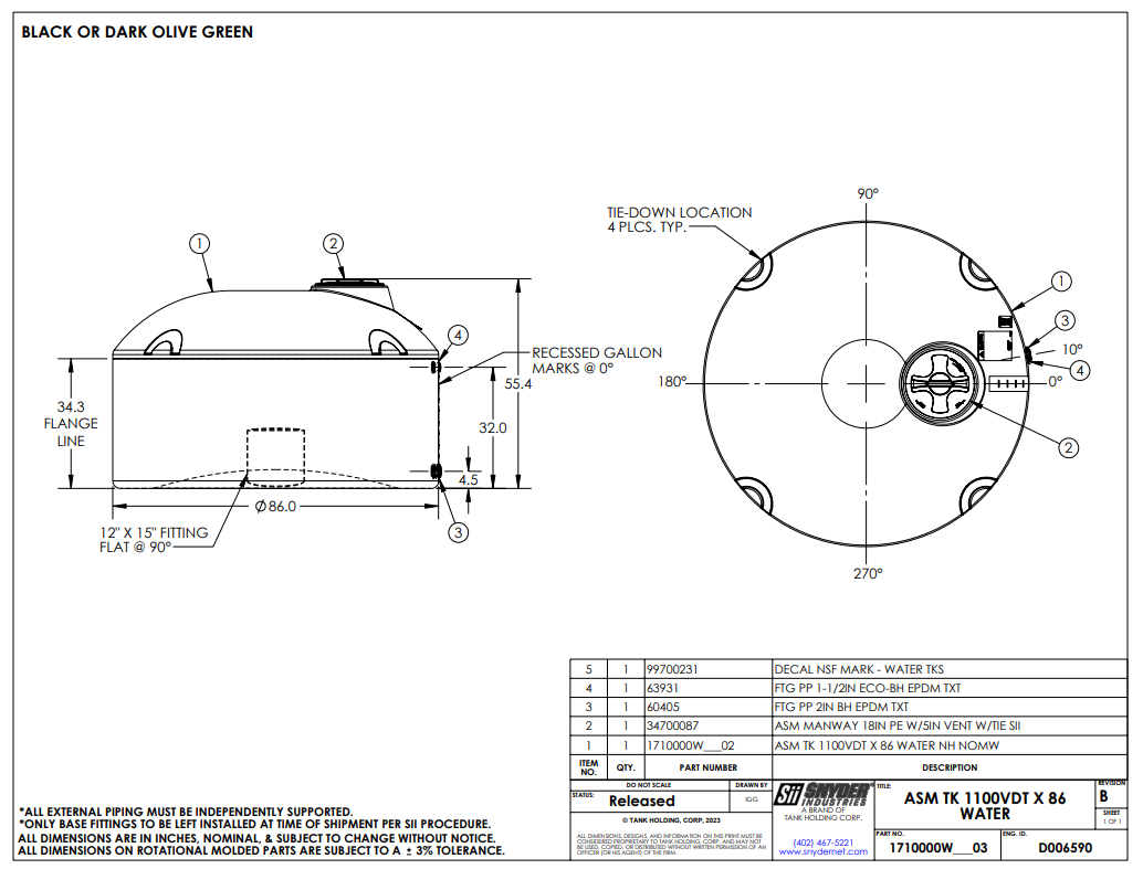 WG42 1710100W94203 1100gal 86"D x 53"H Green Poly Water Tank FOB Phillipi WV